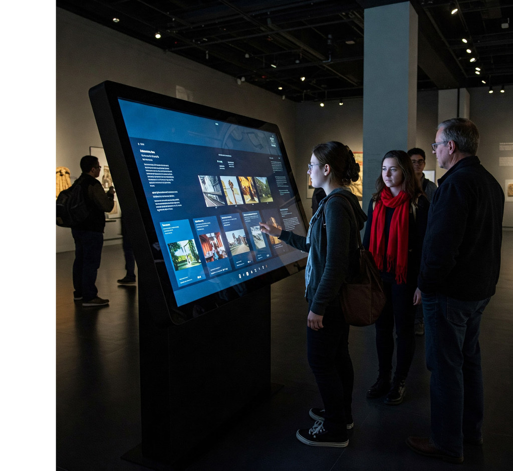 Unsere interaktiven Terminals bieten eine benutzerfreundliche und moderne Lösung für Museen, Ausstellungen und Präsentationen. Mit einer intuitiven Bedienoberfläche und robuster Technik ermöglichen sie eine schnelle, präzise Interaktion.